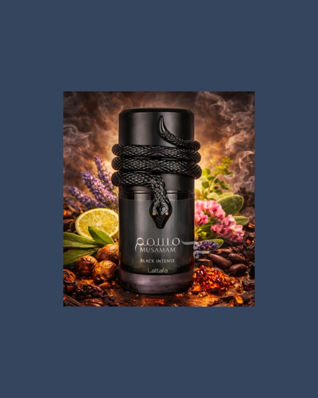 Musaman black Intense da marca Lattafa é uma fragrância quente, especiais, amadeirada e gourmand. A fragrância evolui de uma abertura cítrica/aromática para um coração floral amadeirado, finalizando com um fundo intenso e cremoso.Projeção marcante e longa duração. Perfeito para o outono/inverno e ocasiões noturnas formais, transmitindo sofisticação e mistério.